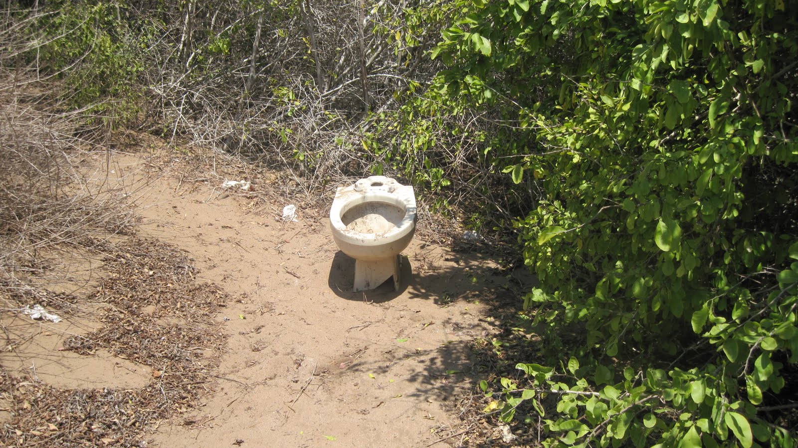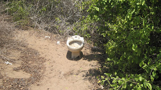 The picture of the toilet outside is, of course, a joke.  Someone thought it was funny as it was on an island which is a bird sanctuary and also has a great beach for snorkeling.  The island did not have any bathrooms and visitors had to, well, off to the woods you would have to go. This seemed strange given that it was a bird sanctuary.